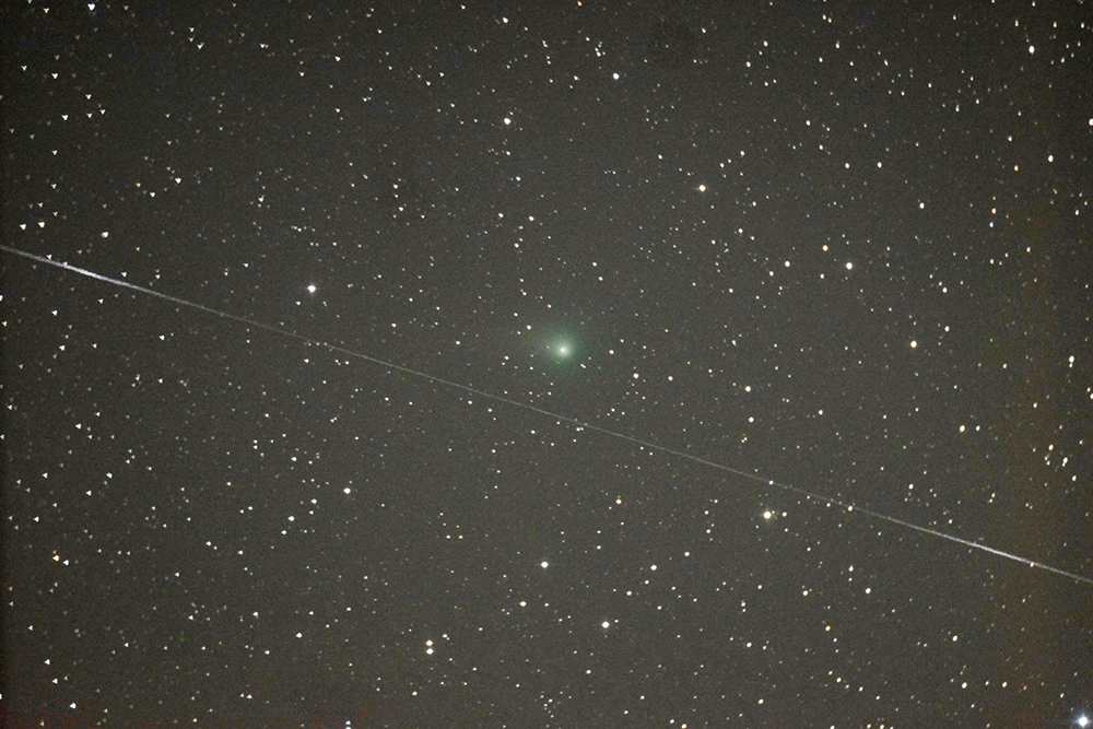 そして撮影中には全く気が付きませんでしたが、帰ってから画像を確認したらT2パンスターズ彗星を撮った画像の1枚に人工衛星が映り込んでおりました。